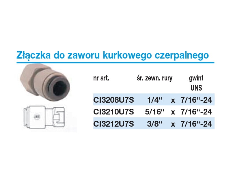 CI3208U7S John Guest, złączka do zaworu kurkowego szybkozłączka 1/4" x gwint 7/16" UNS.