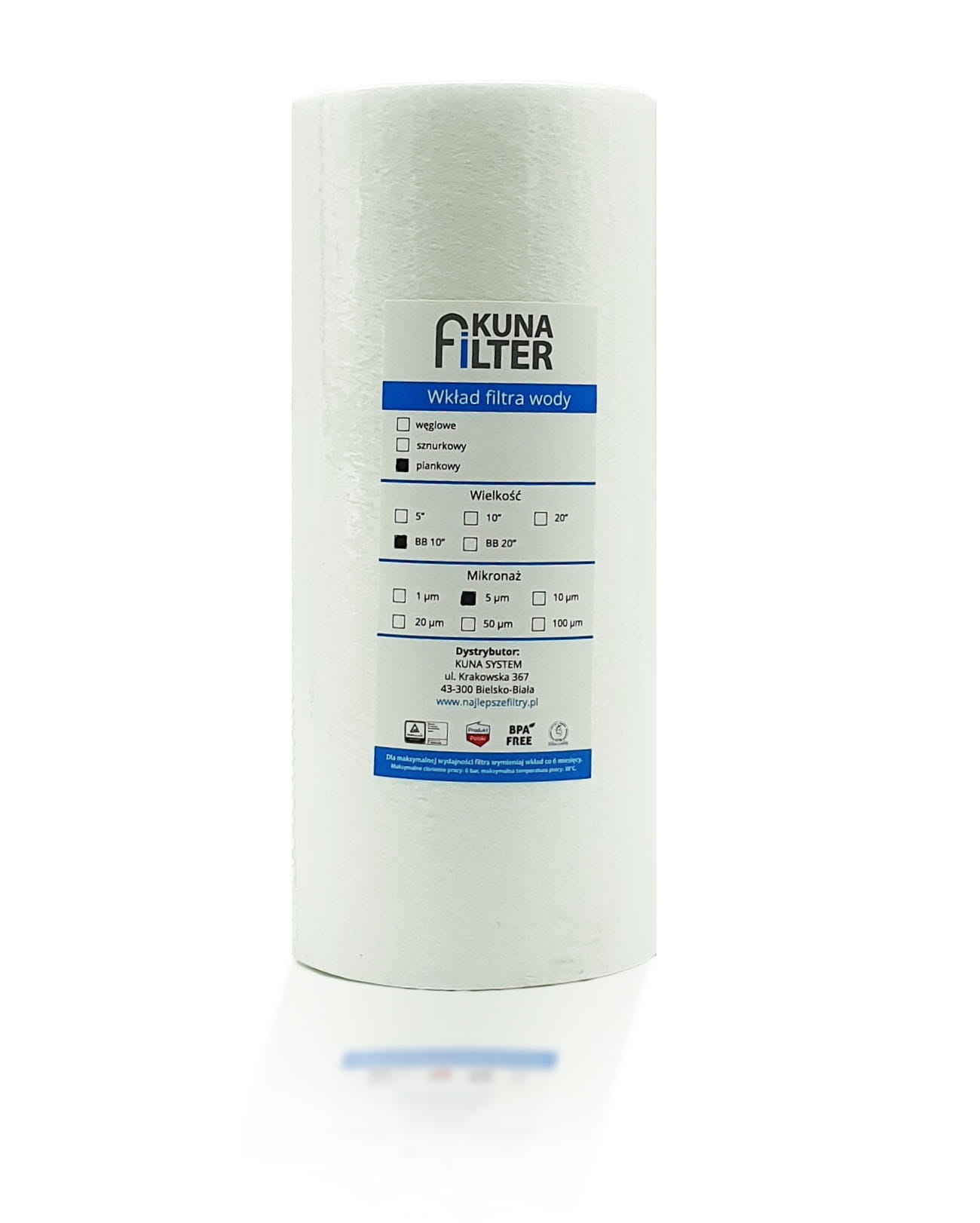 Wkład piankowy 5 mikronów (polipropylenowy) do obudowy BB-10''.