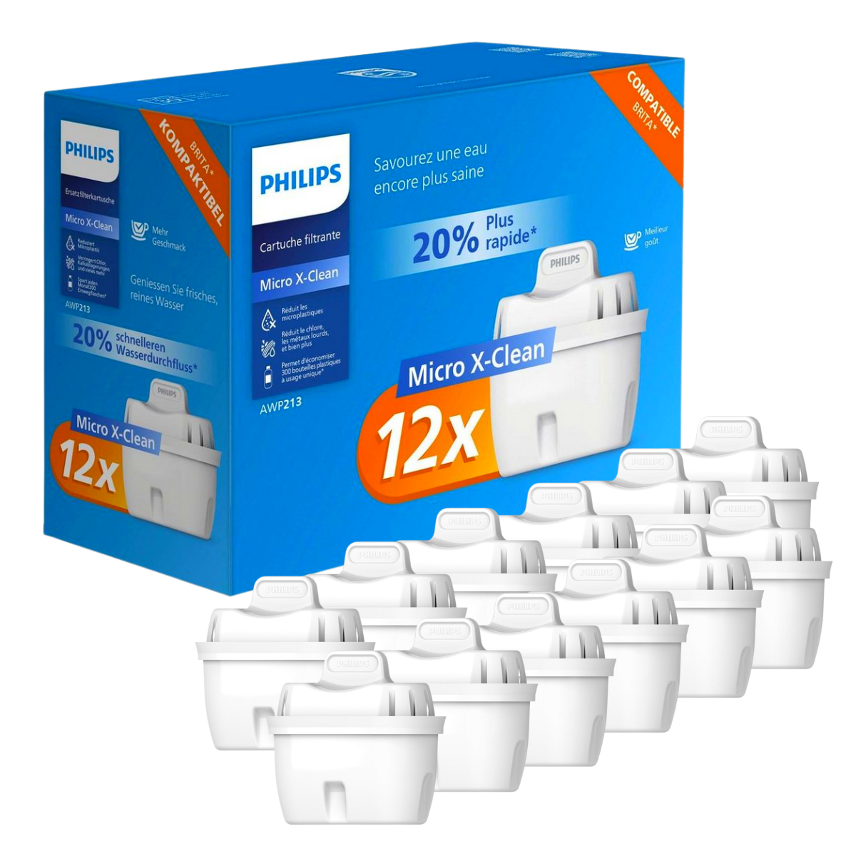 Wkłady filtrujące PHILIPS AWP213/10 do dzbanków. Duży zestaw 12 sztuk wkładów PHILIPS AWP213.