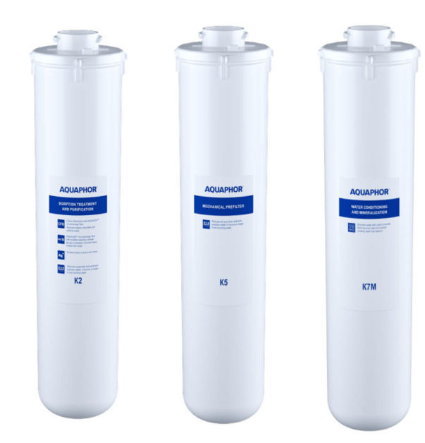 Zestaw wymiennych wkładów do filtrów wody Aquaphor. Wkłady K2, K5, K7M. Zestaw promocyjny wkładów na duży serwis Aquaphor Morion.